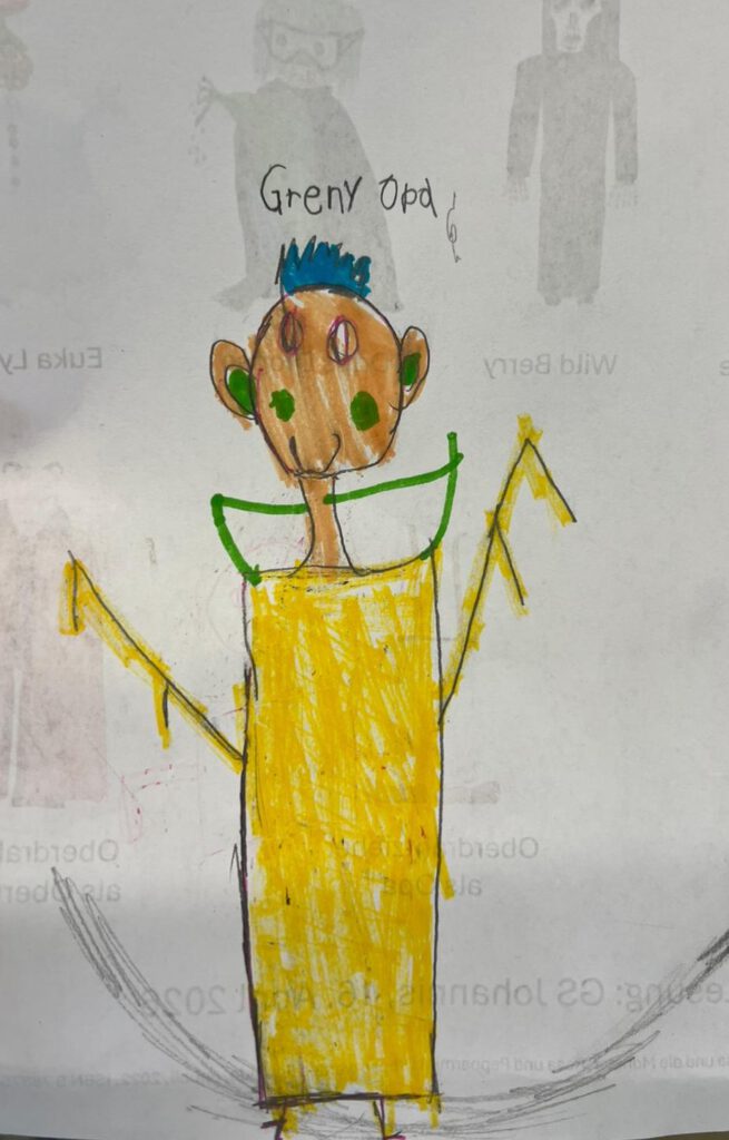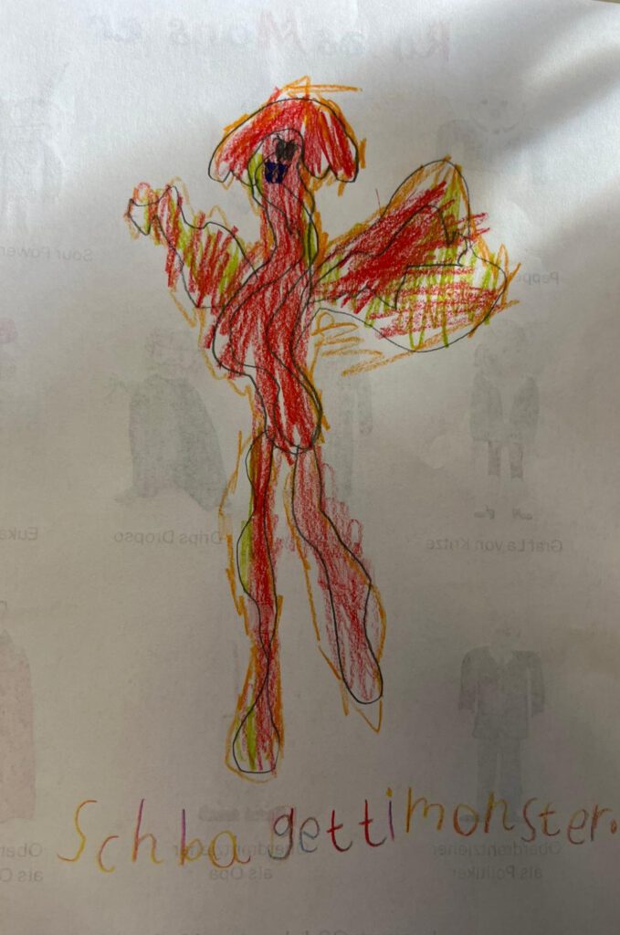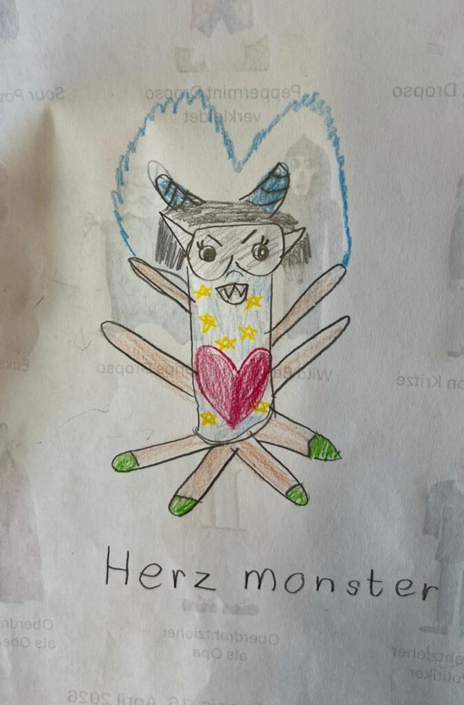 Mit viel Ausdruck las er ausgewählte Passagen vor, wodurch die Figuren und Monster für die Schülerinnen und Schüler lebendig wurden. Im Anschluss wurden die Kinder selbst kreativ: Sie malten die Monster aus der Geschichte und ließen dabei ihrer Fantasie freien Lauf.